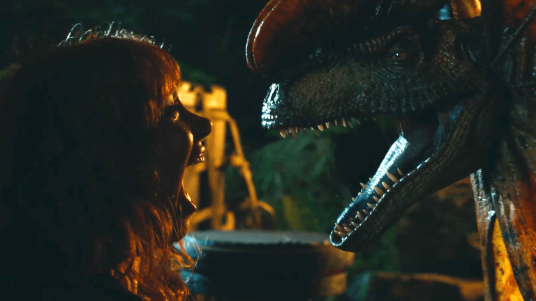 The same can’t be said for the Jurassic World characters, some familiar faces from the previous installments come back including an underused Justice Smith, Daniella Pineda and Omar Sy. What we are left with is a dull Chris Pratt performance (seriously where is the charisma that made this guy famous almost a decade ago). Owen is meant to be the cool dad doing anything to save his kid (both clone and raptor) but he never feels like we wants to be here. Bryce Dallas Howard on the other hand gives everything she can to lift this lackluster script and a character who has previously been reduced to enough female stereotypes to fill a producer’s checklist. Dallas Howard dons the mother’s role a lot better than her counterpart. As Claire she knows she has made mistakes and continuously feels the need to make up for them. Again, it’s clearly a female role being controlled by male penmanship, but she lifts it up in every way she can. Claire also gets some of the more exciting moments of the film involving a fantastic chase sequence through the marketplace of Malta. She is also finally given another woman to actually connect with in the form of an autopilot for hire Kayla Watts (a wonderful DeWanda Wise). Watts is their ticket to the Biosyn headquarters island where you guessed it the past will meet the present.