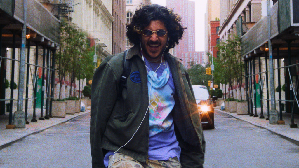 Dev’s best friend is also an addict, Luca (Dion Costelloe channeling the same energy that made Christopher Abbott an indie star) and the two of them are clearly infatuated with Regina and want to take it beyond the rooms (a big no-no in the world of recovery). Dev and Luca spend their time outside of meetings reading lines and hoping for a call back for something involving Staten Island firefighters, (Dev breaking the fourth wall again to remind us that he looks more like Gollum than a firefighter). They are brothers even if they live in two separate worlds, Dion the more straightforward while Dev lives in his own cinematic universe which is shown as he bikes down a nearly empty New York City street to his own theme song. (God’s Time takes place and was shot during 2020 at the height of the first pandemic lockdown). But when Regina again shares that she will kill her boyfriend but doesn’t end her share with saying “God’s Time” Dev goes into hyper alert and believes she will actually go through with shooting him. Thus sets off a crazy twenty-four hours that can only happen in New York City.