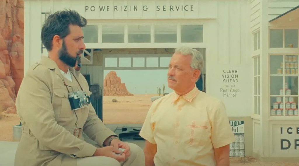 Jason Schwartzman has practically become synonymous when mentioning Wes Anderson films. Starting off in 1998 with “Rushmore” Schwartzman has grown alongside each starring or recurring role in Anderson’s works. So his face appearing fully bearded and with a smoking pipe is the least surprising thing. Schwartzman is Augie Steenbeck a war photographer (with the shrapnel to prove it) who has brought his four children to Asteroid City. His son Woodrow (Jake Ryan) is there to attend a Junior Star Gazing program with some other brilliant teenagers. Things would be bright for this family in this extremely bright desert town if it wasn’t for their broken down car and the fact that Augie has informed his children of their mother’s passing three weeks late. Her ashes in a Tupperware Augie is the kind of widowed father who already doesn’t know how to step up. His father-in-law Stanley (Tom Hanks) liked but never loved him and feels his need (and burden) to come pick up his grandkids for a better California life. Anderson has always played with the roles of fathers and most of his men lack the resources and love required for the job. With Augie however, Schwartzman gives us a mixture of both deadbeat and resilient. His grief is with him constantly but for every step he takes away from his children he always extends his arms back to hold them. As the film itself jumps back and forth between Augie the character and Augie the performer (an entirely different person) we see a man grieving as a character but as the actor portraying he expresses difficulty in understanding all his character’s motivations. In Augie there is this ability to channel well known plays such as Our Town or Waiting for Godot. Seeing life from outside in even if you are entirely unsure of the results.