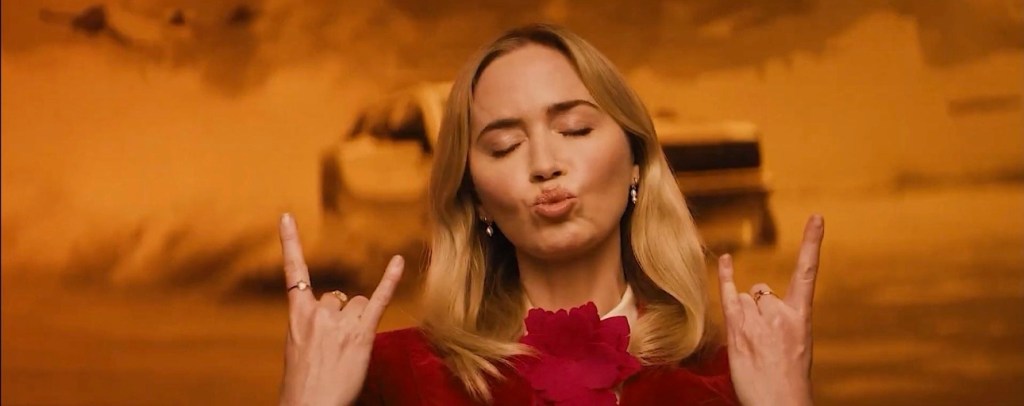 THE FALL GUY seems to be one of the rare studio films that is two types of films greatly blended together. While the action aspect is a special delight throughout the not so secret weapon of the film is its romance from Colt and Jody. Gosling is always a charmer that is undeniable, but what works best here is less the neediness of Ken or even the sarcasm of his Crazy, Stupid Love character but instead a truly broken man. Sure some of the scenes of him crying along to a very famous pop stars song gets a big laugh, but its his sincerity of wanting to prove to Jody he can be better than the man who pushed her away. For Gosling it comes all too easy, but that doesn’t mean the same goes for Colt. When Tom Ryder goes missing from set Colt finds himself in some deep waters and running away from some very big stuntmen in the form of guns for hire. Lietch along with screenwriter Drew Pearce (adapting the story from the 1980’s show of the same name) constantly uses these big action sets to display Colt’s love for Jody and his now willingness to do everything for her. Blunt on the other hand as Jody gets to show off some free spirited comedic chops as a director trying to hold it all down but knowing this man she wants nothing to do with is the one she wants to be closest too again. It’s familiar territory for the genre but any scene involving Blunt belt out a karaoke version of Phil Collin’s “Against All Odds” is a win in my book. Even Blunt’s slight mistreatment of Colt on set making him do the same stunt over and over again while berating him on a megaphone about how the movie’s story may be similar to there own (it’s not) is hysterical allowing Blunt to really show off her deadpan humor while also being a riot for anyone whose worked on a set that has had the misfortunate of being derailed for the director’s own heartache.