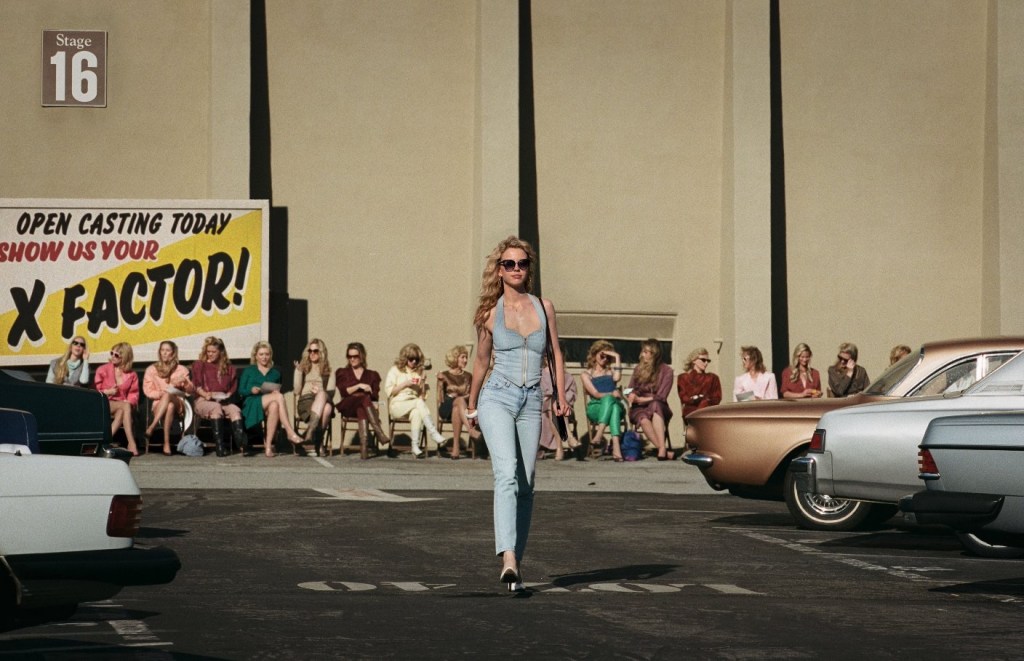 Maxine Minx (Mia Goth) still wants to be a star. After escaping the Texas bloodbath at the hands of the evil and very old Pearl back in 1979, Maxine has found her way into 1985’s Sunset strip Hollywood scene. A dangerous but exciting time full of heavy metal, video rental stores and for better or worse enough adult entertainment to define an entire city. Maxine herself has made a name for herself starring in adult entertainment, but she knows she is destined for more which leads her to an audition for an upcoming horror sequel “The Puritan II.” West wants to remind us of a time where horror films pushed out sequels left and right, but while most of these films ended up on the shelf of a video rental store becoming just one of many there were the rare occasions when one was held in higher regards and in West’s mind this is due to the director. In this case “Puritan II” is directed by Elizabeth Bender (Elizabeth Debicki) who sees something in Maxine. Perhaps it is that star quality Maxine sees in herself. But as exciting as it is for her to be in a new Hollywood film Maxine’s past is far from done with her. West using the real life serial killer the night stalker sets up Maxine’s life to be in turmoil when several of her friends become victims to what the police believe to not just be the night stalker, but also believe Maxine may be under the killers hood. While the idea of Maxine going from farm girl to murderer isn’t that far stretched the film always believes itself to be cleverer than it is. West is clearly channeling DePalma with his set up but even DePalma knew how to just let loose and not attempt trickery for shocks sake.