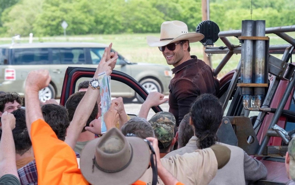We can talk a lot (and we should) about the charm of the film’s leads, but even more so is the charm of director Lee Isaac Chung in his ability to take these intense moments driven less by the storm at hand but the care we have for those in danger as well as the love they bring to the game and each other. Chung may avoid many of the legacy sequel staples (there is no mention of any previous events or characters of the first film) but he knows that what made the first film so fun was its cast. A ragtag team of faces that are all too familiar now (the original team helmed Phillip Seymour Hoffman, Alan Ruck, Todd Field, Jeremy Davies and more) and this time around Owens’ team with O’ Brian, Perea and Lane are all fresh faces that are one step away from their major mainstream breakout. Many of them have already had that moment in the film Twitter scene so it makes it all the more exciting when David Corenswet shows up as Scott an asshole money funder on Javi’ team all while some of the audience may or may not know he is about to don the infamous Superman cape next summer. It does not benefit the movie as a hole, but it does play into that fun element of TWISTERS carrying on the legacy of being a star maker for everyone involved in some form. And it helps that whether they are playing a good or bad person TWISTERS holds the first cast of the summer that you actually want to hangout with it anytime of the day. It does not hurt that TWISTERS is stock full of an original movie soundtrack (remember those!) featuring Luke Combs, Lainey Wilson, Jelly Roll, Miranda Lambert, Thomas Rhett and Kane Brown just to name a few. Hell even one time Walmart yodeler Mason Ramsey has a song that will leave you dancing on your drive home. TWISTERS is a party, it’s a red solo cup film that has you running for your next Busch Light beer, as you thrown on your cowboy boots chanting Owens’ mantra , “If you feel it! Chase it!” Not a bad way to spend your summer if you ask me.