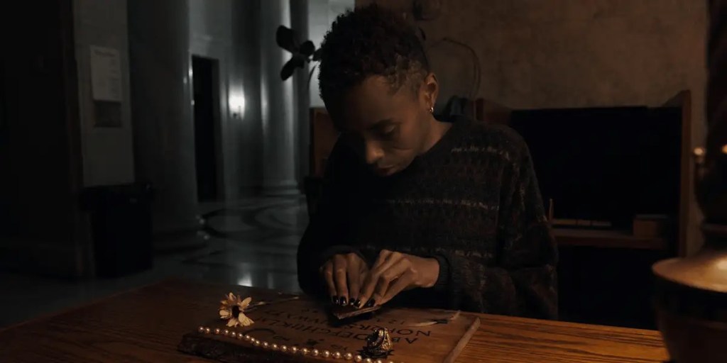 While the film never reaches the same tension level as those opening moments, there is a strong emotional arc of Ozzie throughout that allows us a somewhat behind the scenes look at your favorite urban legend stories. There is a moment where Ozzie themself searches through online threads and website dedicated to the scariest places in America and their urban legends, but WHAT HAPPENED TO DOROTHY BELL is not focused on the possible instead it focuses on the reality. The reality here is that even if something was wrong with their grandma it still left a never ending impact on Ozzie’s family. Ozzie has pushed away their parents and even when their father (Michael Hargrove wonderfully heartbreaking) does try to reach out its met with anger and frustration for lack of answers as well as that still childlike behavior that maybe they themselves were the problem, not the adults. These family wounds are built on as Ozzie attends therapy via zoom with their therapist (Lisa Wilcox) and while Ozzie appears to like the routine, Villanueva Jr.’s script does a good job at executing that no amount of therapy can make up for the few answers Ozzie holds.