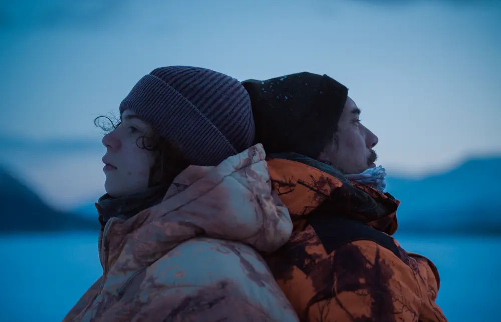 Roy doesn’t know his father. As a child Roy (Woody Norman) rarely gets to hear from his father Tom (Swann Arlaud) and sees him even less. This trauma bond has followed Roy all the way to his more adult years (where he is played by Ruaridh Mollica). Roy has ventured out to the Norwegian fjords to seek out a remote cabin. Why this place? Well when Roy was a young teenager he agreed to take a trip with his father out to this cabin where they would live and survive off the land for one year. Basically a Man vs Wild episode if your dad was a much less competent Bear Grylls. While the situation may seem almost endearing it’s hard to tell if the director himself believes what he is selling. The situational seems peculiar but still believable. Even when the pilot Anna (Alma Pöysti) brings them to their location it comes with some curiosity if they can handle all this. Tom assures them they can. ISLAND’s believability early on relies on Norman and Arlaud as performers. Arlaud with his boyish hair may have made hearts feel sad in “Anatomy of a Fall” but here Arlaud knows as Tom he has to earn our trust. It’s an intriguing decision and while we want to trust Tom it’s impossible to shake that feeling of how much danger he is putting Roy in, all for the shake of bonding with someone that most likely had better opportunities at hand. Norman on the other hand as Roy has no trouble winning us over. Norman who broke out in Mike Mill’s “C’mon C’mon” proved that he is a natural talent. His resistance and frustration as Roy always feels counteracted with his curiosity to learn who his father truly is and also get the experience of being a man he may not get at home with his mom and girlfriend. While the two performers find ways to bounce off one another the situation at hand still feels far too manipulated often due to some very clunky dialogue. But even with these shortcomings the film often feels like it has a deeper secret up its sleeve.