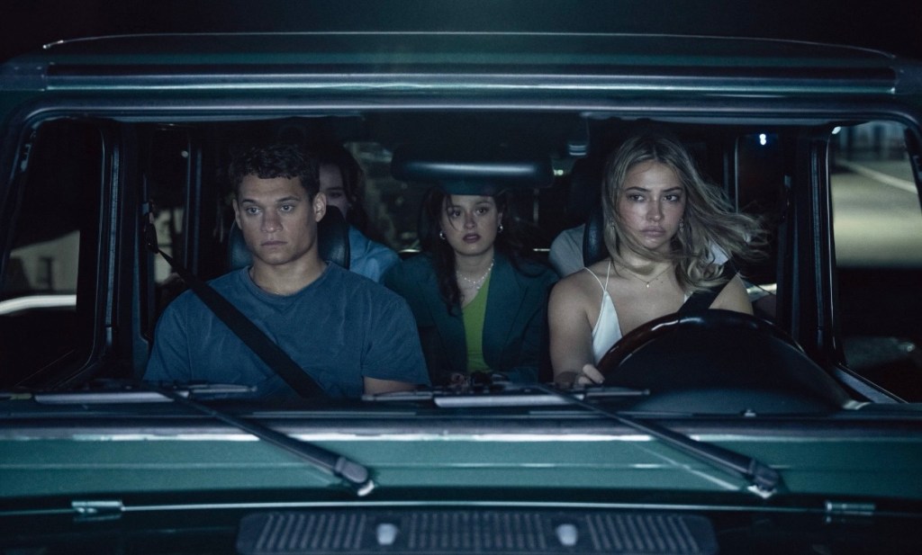 Everything can change over one summer. For Ava (Chase Sui Wonders) and her friends this summer means a wedding. Her best friends Teddy (Tyriq Withers) and Danica (Madelyn Cline) are getting married while Ava and the other core member of their group Milo (Jonah Hauer-King) have broken up leaving a very uneven balance amongst the friend group. It also doesn’t help that they abandoned their fifth wheel friend Stevie (Sarah Pidgeon) after her family lost everything financially. This is Southport after all and image is everything, which is why Danica and Teddy need the perfect wedding provided by Teddy’s chief of police father (Billy Campbell). And while a new generation is now reaping the benefits of Southport’s pristine tourist town very little has changed. Ava and her gang are capital S spoiled which gives them very little worry about driving their G-Wagon Mercedes way over the speed limit on the deadliest road in town. Kaytin Robinson doesn’t take long to get to the moment that will define her new character’s lives. A near death experience for the gang leads to the death of a travelling passenger and just like in 1997 a secret is promised to be kept for the rest of their summers. LAST SUMMER is obviously familiar in its setup but once much like the first film its strongest aspect is the cast of young performers. Chase Sui Wonders’ leads with more than enough compassion and worry while Withers and Hauer-King carry enough mystery and frustration that have you wanting to believe their innocence when bodies start dropping but with enough devious attitude that they could very well be a killer. And then there is Madelyn Cline, who has had great success on Netflix’s “Outer Banks” as a misunderstood spoiled princess. Cline is not just the MVP performer she gets to carry both the weight of Sarah Michelle Gellar’s Helen Shivers (right down to the diva voice) while also using such innocence and naivety to bring some of the film’s most hysterical and campy moments. But even with that humor there is such a sincerity to Danica that you also start to see that Robinson and co-screenwriter Sam Lansky use Danica to clear up some of the errors that plagued the original film. It is less fan service and more self-reflection of a beloved film that didn’t always hit the mark.