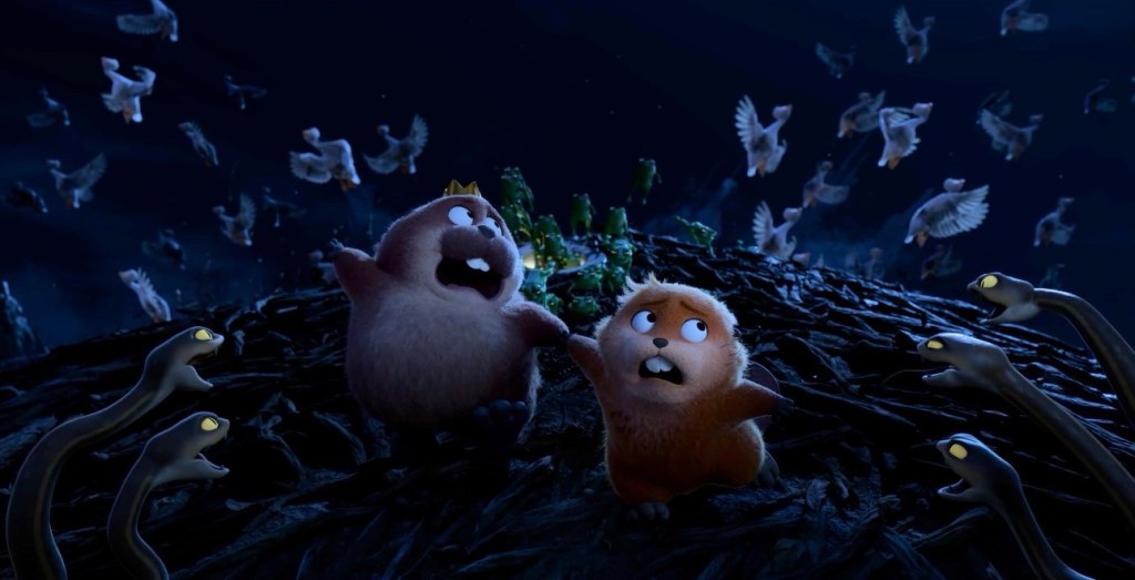 HOPPERS much like its creators previous employer, quickly feels like something you’d watch on Cartoon Network. It has a weirdness from jazzercising animals to an edge that includes an honest depiction of the circle of life. But it also seems to be the rare animated film these days that can have its sticks and eat it too. In a time where Gen Z and now Gen Alpha are combated with odd online trends and memes that this critic is too old to appreciate HOPPERS feels less interested in fighting these eccentric behaviors but instead engage with them. There is a bluntness throughout HOPPERS that only makes the extreme moments stand out even greater. Even Mabel herself at 19 feels out of touch with these animals that feel of a younger generation. Or perhaps its their adolescent attitude that makes coming together all the easier. There is a common goal amongst the animals allowing for even their voice performers (including Melissa Villasenor, Tom Law, Vanessa Bayer, Ego Nwodim and more) to feel so in sync.