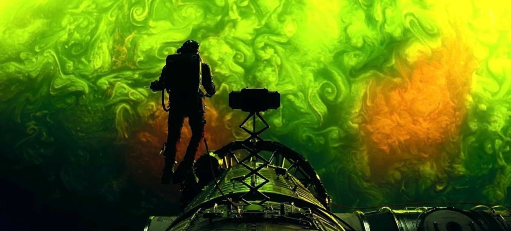 But one thing PROJECT HAIL MARY wants us to know is that nobody can succeed alone. After a gripping first hour the film introduces us to a rock. While encountering another spaceship that appears far more advanced, Ryland meets its lone survivor, an Eridian species rock-like creature who Ryland dubs “Rocky.” While adapted straight from the source the film’s biggest lack of trust in its intensity seems to be in this cute stone like creature. Rocky (voiced by James Ortiz) without blinking an eye is reduced to adorable pet dog. While it is clear his species is far more intelligent than humans the film is more interested in a buddy comedy film that greatly succeeds in filling the film with humor while avoiding depth faster than a shooting star. It doesn’t help either that most of Rocky’s dialogue feels like it was written for a Guardians of the Galaxy movie where every moment of realization is followed by a quip so painfully unfunny you wonder if the “21 Jump Street” or “Spider-Verse” movies were just fever dreams. Or perhaps Drew Goddard has inserted enough of his worst tendencies and has disguised them behind a stellar production level. Greg Fraser’s cinematography is as striking as many have come to expect from the once “Dune” cameraman while Daniel Pemberton’s score is so thunderous and aggressively unsubtle that you can’t help but be swept up. Space movies may struggle to find their own distinct look but PROJECT HAIL MARY has enough stunning beauty to feel separated. Fraser doesn’t limit himself just to space exploration as its Earth sequences (with smaller aspect ratio) still holds a dreamlike feel as the visual lines are blurred the more Ryland’s anxiety of remembrance occurs. All this should be enough to distract from the film’s more “cutesy” antics but the writing of Rocky never rises above and only brings Gosling’s performance down.